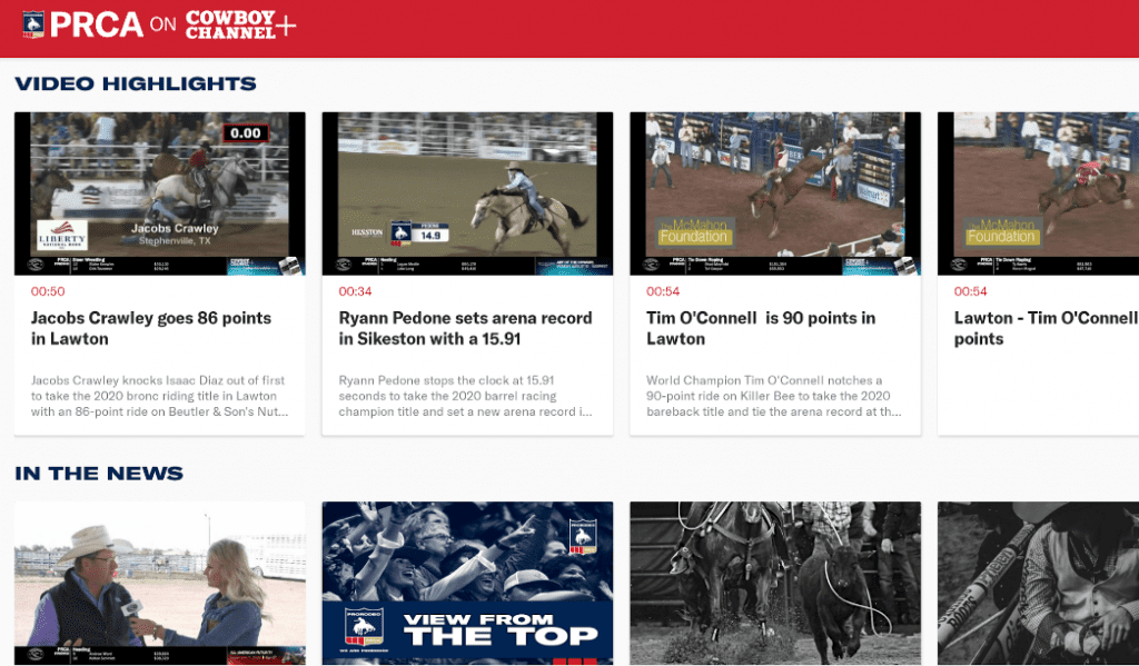 The Cowboy Channel+ has exclusive live PRCA and WPRA rodeo performances and PRCA video archives that you can’t find anywhere else. They offer multiple live streams of 350+ exclusive live PRCA rodeo performances, as well as a section called “Rodeo Archives” with 100+ cities in the U.S. You’ll be able to explore cities like Pasadena, TX; Salinas, CA; Nephi, UT; Omaha, NE; Lewiston, ID; Puyallup, WA; and many more.